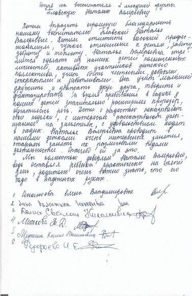Отзыв от родителей (законных представителей) подготовительной группы МКДОУ-детского сада № 12, 2021 год