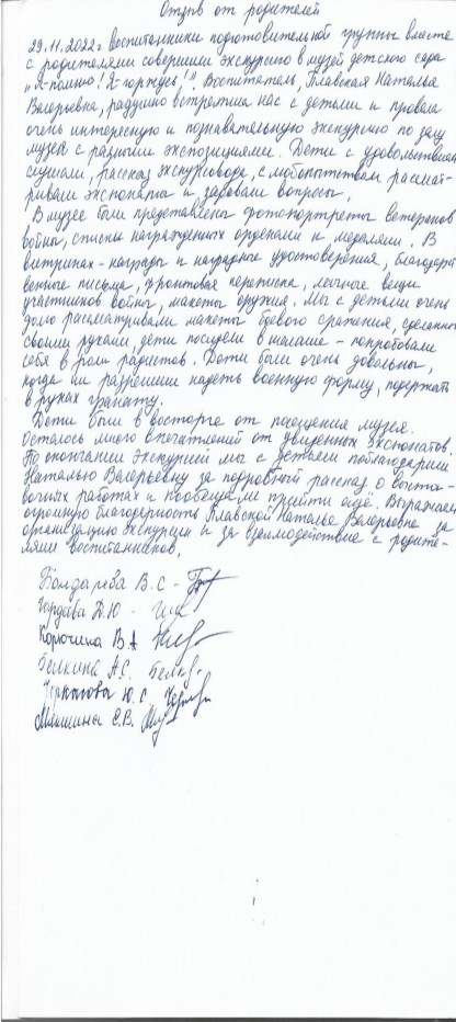 Отзыв от родителей (законных представителей) воспитанников второй младшей группы МКДОУ-детского сада № 12, 2022 год